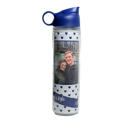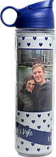 We offer four simple ways to design your customizable water bottles: you can create a team-style bottle, upload a complete design, upload artwork and add text, or personalize a bottle by adding your photo to a decorative background.