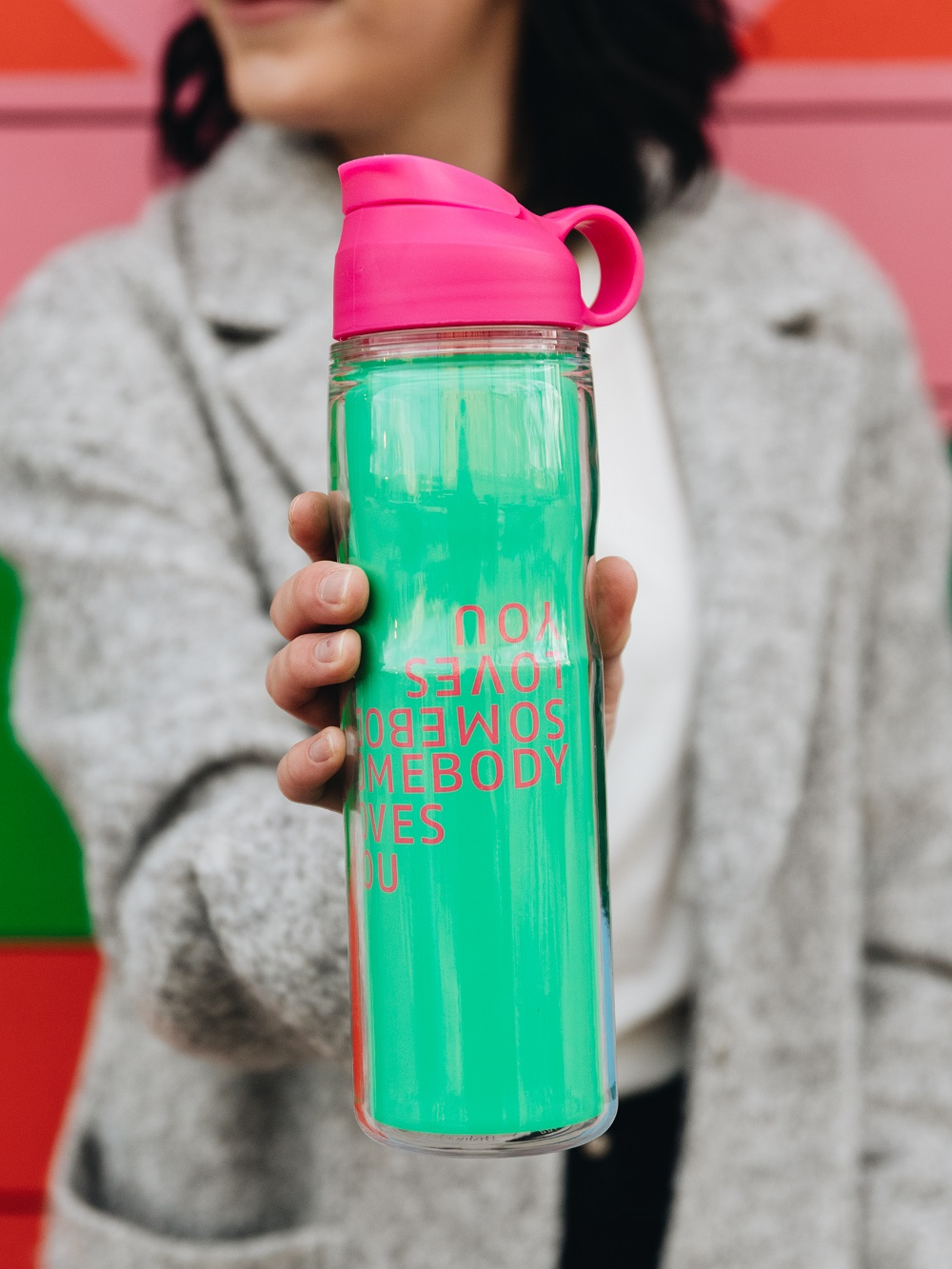 - 19 oz. clear Tritan 2-walled plastic water bottle